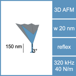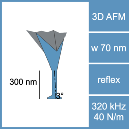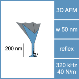 - Tip widths from 130 nm to 15 nm for the reconstruction of finest 3D reentrant structures